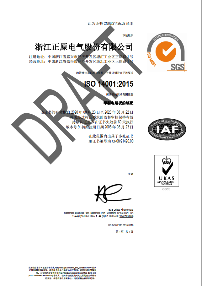 正原電氣已獲體系認(rèn)證:已通過(guò)ISO9001、ISO14001、ISO45001管理體系認(rèn)證 。